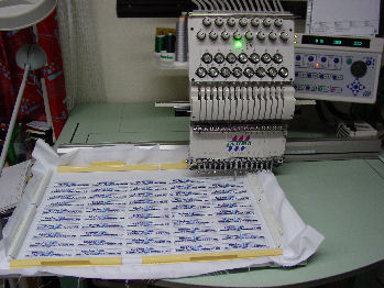 Diese werden in einem grossen Rahmen auf speziell vorbereiteten, verstärkten Stoff gestickt und nachher ausgeschnitten.